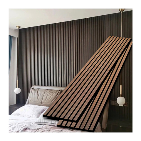 Sıcak satış akustik ahşap sergi duvarı paneller fabrika toptan MDF PET malzeme ses geçirmez iç dekorasyon oturma odası yatak