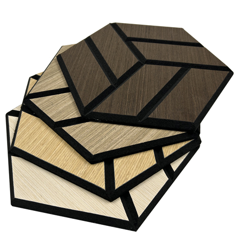 Pannello acustico in fibra di poliestere con impiallacciatura di legno moderno esagono fonoassorbente a parete per la decorazione d'interni soggiorno Hotel